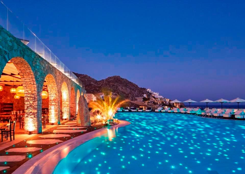 Στην ειδυλλιακή παραλία της Ελιάς, διάσημη για τη λεπτή άμμο και τα κρυστάλλινα νερά της, το Myconian Utopia Relais & Chateaux, το Myconian Avaton, που διαμορφώνει τάσεις, οι πολυτελείς Myconian Villas, καθώς και τα Myconian Imperial and Myconian Royal resorts -αμφότερα υπερήφανα μέλη της διαπρεπούς αλυσίδας Leading Hotels of the World-, προσφέρουν πανοραμική θέα στο Αιγαίο από τις εκπληκτικές πισίνες και τις πριβέ βεράντες τους. Νοτιότερα, το Myconian Ambassador Relais & Chateaux προβάλει ως φάρος εξαιρετικής σύγχρονης κομψότητας πάνω από τον πανέμορφο κόλπο του Πλατύ Γιαλού, αληθινό κόσμημα σε μια δαντέλα από εξίσου φημισμένες γειτονικές παραλίες, την Ψαρού, την Αγία Άννα και την Παράγκα. Στην Χώρα της Μυκόνου, ακριβώς πάνω από τους εμβληματικούς ανεμόμυλους της Αλευκάντρας, στην ίδια ακριβώς τοποθεσία που επέλεξε ο ιδρυτής του Ομίλου για το πρώτο ξενοδοχείο του, ξεχωρίζει το μοναδικό μπουκέτο από πολυτελείς μονάδες παραθερισμού, τα πεντάστερα Myconian Kyma Design Hotel Starwood, Myconian Naia και Myconian Korali Relais & Chateaux, που ολοκληρώνουν έναν λαμπερό αστερισμό, απαράμιλλο στο Αιγαίο.