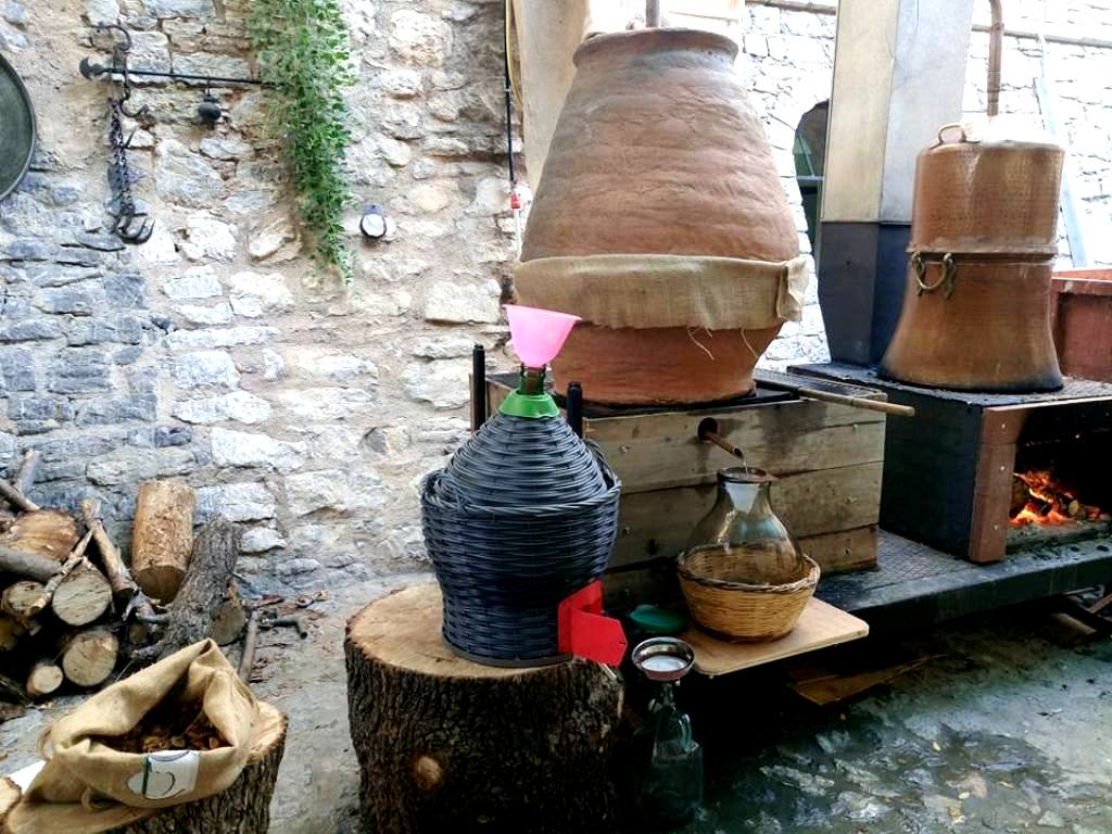 Το παλιό καζάνι απόσταξης της σούμας, όπως εκτίθεται στο κατάστημα παραδοσιακών προϊόντων «Ευεργετική Γη».
