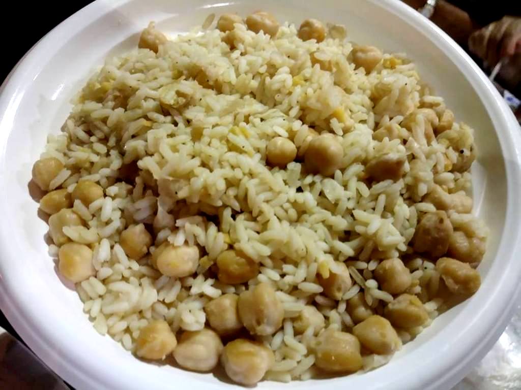 …και στη συνέχεια το κυρίως πιάτο, ρεβυθοπίλαφο για τους νηστεύοντες -λόγω Δεκαπενταύγουστου-…