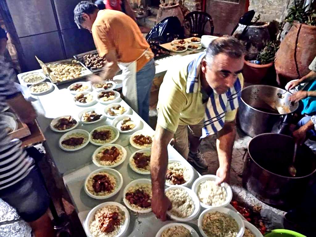 Θεωρώ -και είμαι βέβαιη πως θα συμφωνήσετε μαζί μου- ότι η παρουσίαση αυτή πρέπει να ξεκινήσει με τους «κοπιαστικούς», με όλους δηλαδή εκείνους τους ανθρώπους που προσέφεραν και φέτος την εθελοντική τους εργασία, προκειμένου να έρθει σε πέρας ο τεράστιος όγκος δουλειάς, που απαιτεί η συγκεκριμένη διοργάνωση. Εδώ, η ομάδα των εθελοντών μαγείρων έχει στήσει την κουζίνα της στους χώρους του παλαιού Σχολείου του χωριού και ετοιμάζει με κέφι και μεράκι πλέον των 700 μερίδων φαγητού!