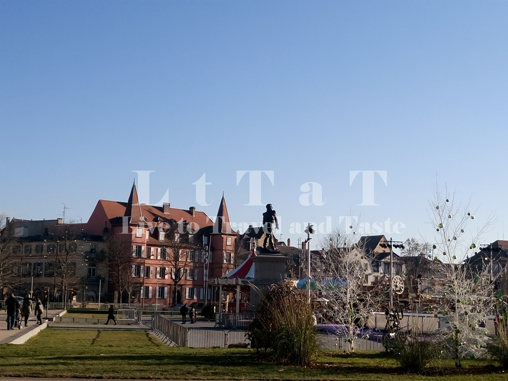 Το άγαλμα του στρατηγού Rapp διακρίνεται εν τω μέσω της χριστουγεννιάτικης διακόσμησης της πλατείας…