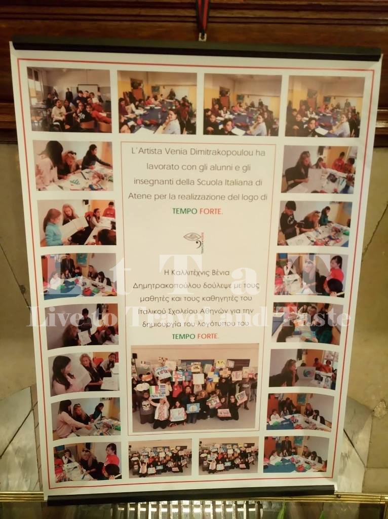 Εδώ, μερικά μόνο από τα έργα των μαθητών, που κοσμούν τους τοίχους της Ιταλική Πρεσβείας, μεταξύ των οποίων διακρίνεται και το προκριθέν για την δημιουργία του λογότυπου της διοργάνωσης Tempo Forte (τέταρτο από δεξιά, στην τρίτη σειρά, με τα δύο χέρια να σχηματίζουν την υφήλιο, για να δηλώσουν πως το μέλλον του