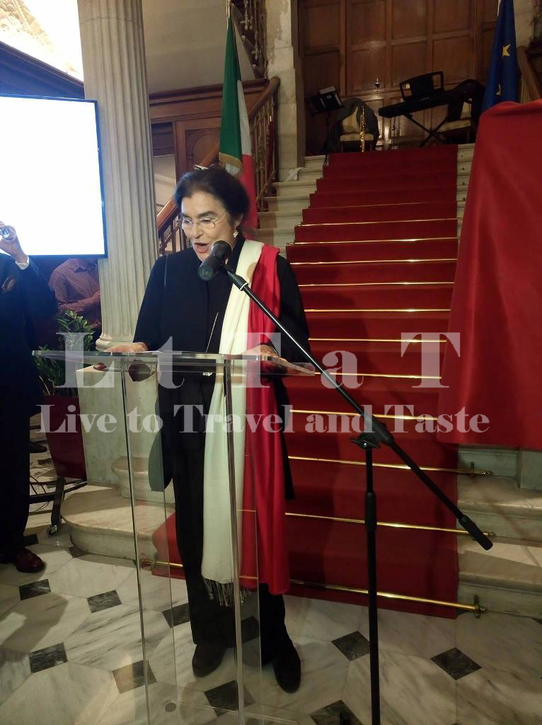 Ακολούθησε ο χαιρετισμός της Λυδίας Κονιόρδου, η οποία άνοιξε και έκλεισε την ομιλία της μιλώντας στα Ιταλικά.