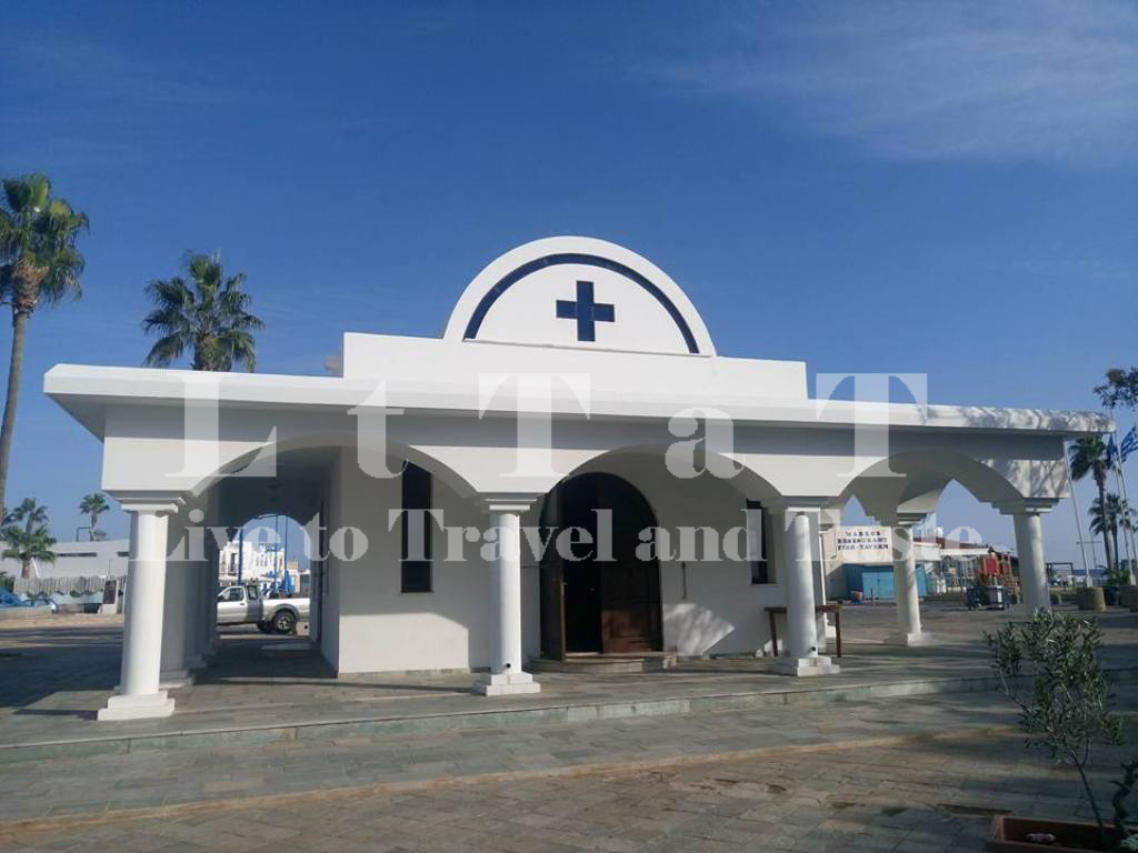 …και ακριβώς από πάνω της το ομώνυμο εκκλησάκι, αγαπημένη επιλογή πολλών ερωτευμένων ζευγαριών, που φθάνουν ως εδώ με καΐκια για να τελέσουν τους γάμους τους!