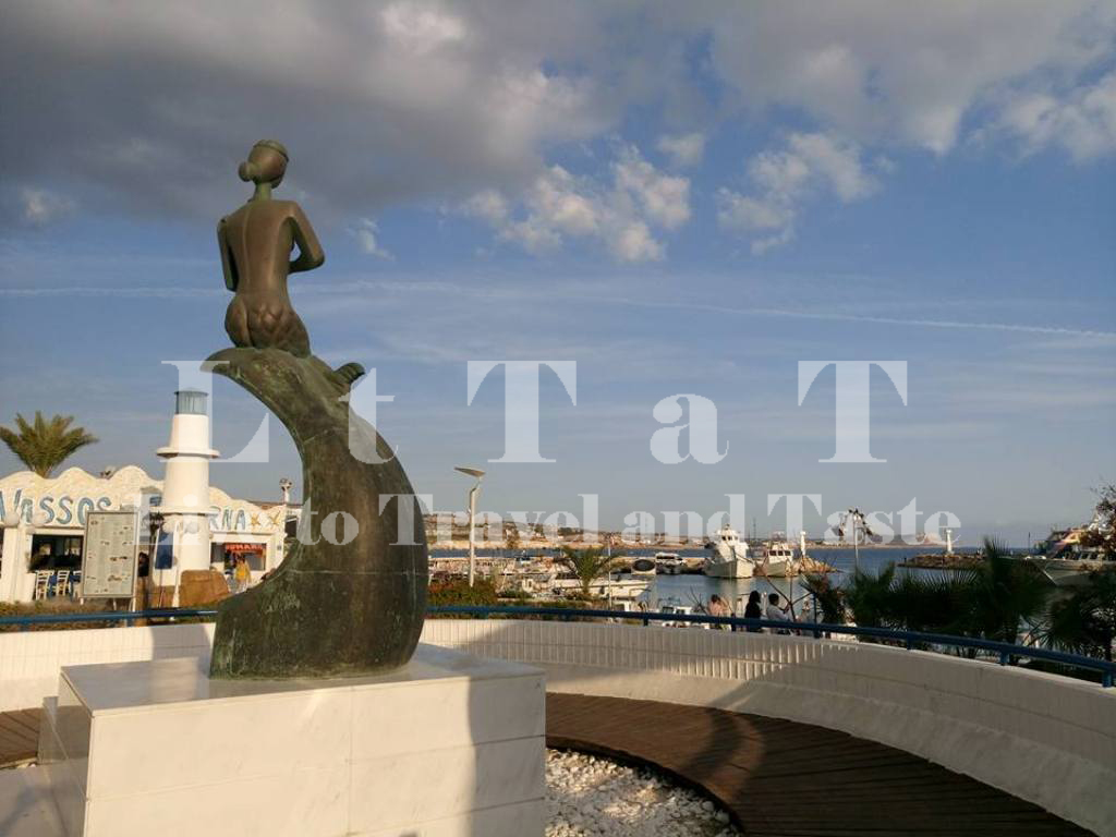 Το Μνημείο της Γοργόνας στην Αγία Νάπα. Το άγαλμα φέρει περιδέραιο με το έμβλημα του Μέγα Αλέξανδρου και έχει δύο ουρές. Το γλυπτό είναι κατασκευασμένο από ορύχαλκο με ύψος 3 μέτρα. Δεσπόζει επιβλητικά στο λιμανάκι της Αγίας Νάπας ατενίζοντας το γαλάζιο του ουρανού και της θάλασσας.