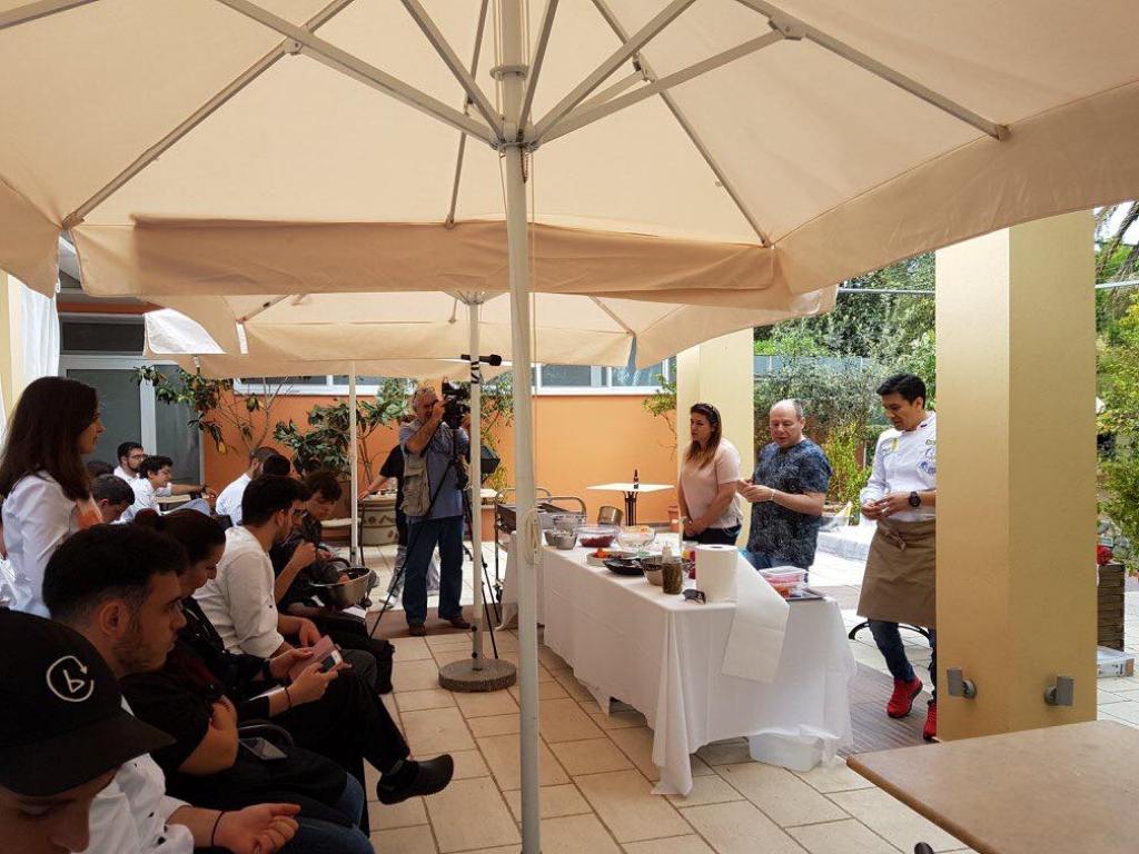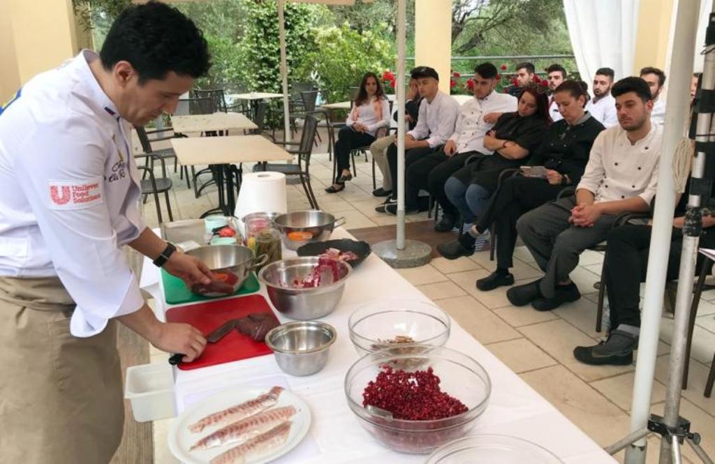 Master Class στην Σχολή Τουρισμού του Δημόσιου Ι.Ε.Κ. Κέρκυρας, από τον Ρώσο chef Rashid Rakhmanov. Αριστερά ο Κερκυραίος chef Σπύρος Βουλισμάς, εκ των πρωτεργατών της διοργάνωσης του 1ου Corfu Food and Wine Festival.