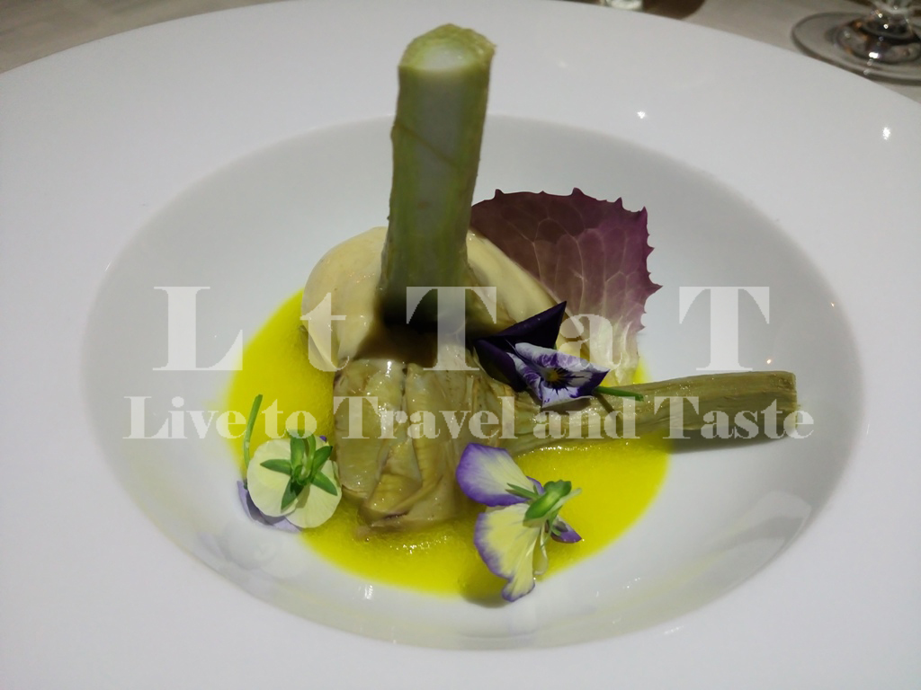 Η κερκυραϊκή συνέχεια του δείπνου περιελάμβανε αγκινάρες «κανκιόφολες» παστρόκιο με περγαμόντο και αφρό σαλάδου (ντόπιο παραδοσιακό σαλάμι). Και επειδή είμαι βέβαιη ότι έχετε πολλές άγνωστες λέξεις σπεύδω να διευκρινίσω ότι οι αγκινάρες «κανκιόφολες» ή «αγκινάρες Ιερουσαλήμ», είναι ουσιαστικά μία ρίζα που παντρεύει στην ιδιαίτερη γεύση της την αγκινάρα με τους ξηρούς καρπούς. Όσο για το παστρόκιο, πρόκειται για ονομασία που έφεραν στο νησί οι Μαλτέζοι και σηµαίνει «ανακάτεµα, ακαταστασία».