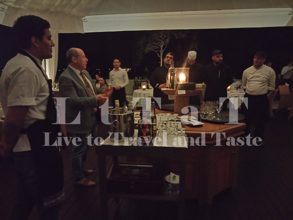Λίγο πριν την ολοκλήρωση του δείπνου ένας σύντομος χαιρετισμός από τους δύο chef, που πραγματικά κατέπληξαν τους συμμετέχοντες στην βραδιά αυτή. Ο Leonid Gelibterman σε ρόλο φωτογράφου και απέναντί του οι δύο chef εκατέρωθεν του Διευθυντή του Κontokali Βay Resort & Spa Γεράσιμου Τράνακα.