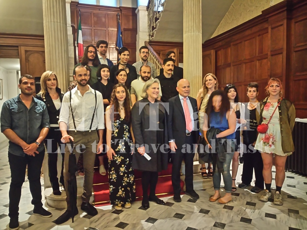 Οικογενειακή φωτογραφία όλων των νεαρών καλλιτεχνών, οι οποίοι πλαισιώνουν τον Ιταλό Πρέσβη Luigi Marras και την γλύπτρια-καθηγήτρια Αφροδίτη Λίτη.