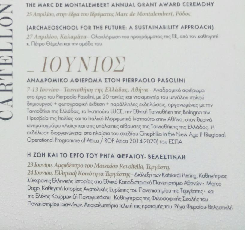 Και βέβαια να μην ξεχνάμε ότι και τον Ιούνιο συνεχίζουν να εξελίσσονται οι δράσεις του προγράμματος Tempo Forte, για το οποίο ο Ιταλός Πρέσβης Luigi Marras είχε πει κατά την διάρκεια εκδήλωσης για την παρουσίασή του: «Το Tempo Forte είναι καταρχάς μία μέθοδος εργασίας, που στοχεύει στην δημιουργία μιας πλατφόρμας επαφής μεταξύ θεσμών, πολιτιστικών φορέων, καλλιτεχνών, ακαδημαϊκών Ελλήνων και Ιταλών, για την επανασύσφιξη ή την δημιουργία νέων και άμεσων δεσμών ανάμεσά τους. Ο στόχος είναι να δημιουργήσουμε ένα διάλογο, του οποίου η απουσία έγινε αισθητή ιδιαίτερα τα τελευταία αυτά τα χρόνια, για να μεταφέρουμε περισσότερη Ιταλία στην Ελλάδα και περισσότερη Ελλάδα στην Ιταλία.»
