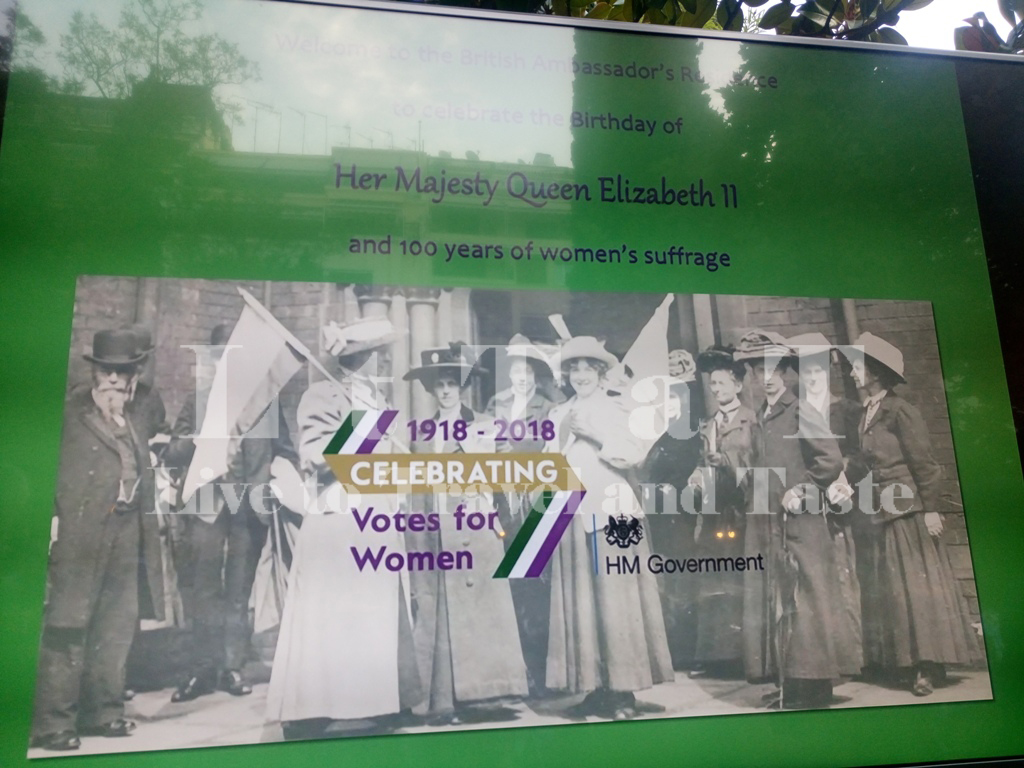 Με την ευκαιρία του εορτασμού των 92ων γενεθλίων της Αυτής Μεγαλειότητος της Βασίλισσας Ελισάβετ ΙΙ, αλλά και της συμπλήρωσης 100 χρόνων από το 1918 και την χορήγηση δικαιώματος ψήφου στις γυναίκες, η Πρέσβης της Μεγάλης Βρετανίας στην Ελλάδα Εξοχότατη κυρία Kate Smith, παρέθεσε δεξίωση στους κήπους της Βρετανικής Κατοικίας, όπου και παρευρέθηκαν εκλεκτά μέλη της πολιτικής, διπλωματικής, οικονομικής, επιχειρηματικής και δημοσιογραφικής κοινότητας, αλλά και φίλοι της Μ. Βρετανίας και βεβαίως οι Βρετανοί πολίτες που ζουν στην Ελλάδα.