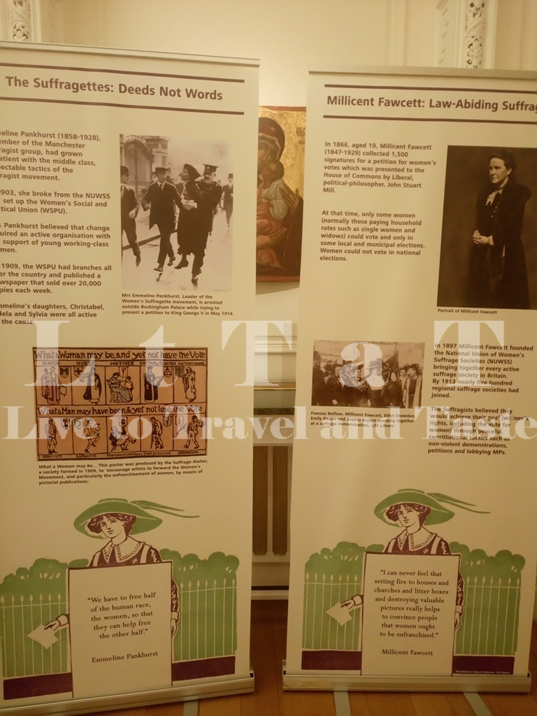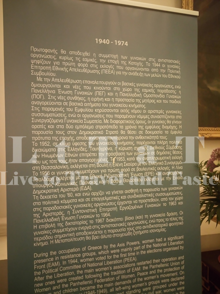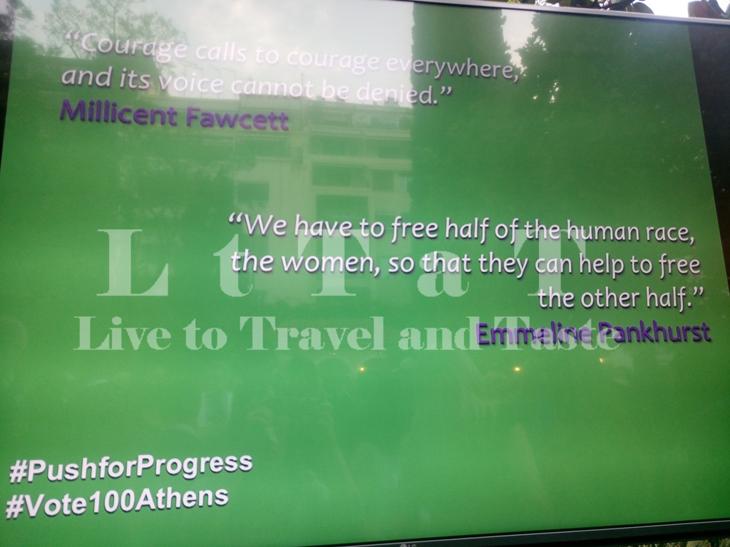 Για όποιον θα ήθελε να εμβαθύνει λίγο περισσότερο στα θέματα της απόκτησης δικαιώματος ψήφου για τις γυναίκες παραθέτουμε τα κατατοπιστικά κείμενα που εκτέθηκαν στους χώρους της Βρετανικής Κατοικίας, με πολύ από το υλικό -που αφορά στο γυναικείο κίνημα στην Ελλάδα- να έχει παραχωρηθεί από το Ίδρυμα της Βουλής των Ελλήνων. Εντελώς ενδεικτικά να αναφέρουμε ότι ο διάσημος όρος Σουφραζέτες επινοήθηκε από την εφημερίδα Daily Mail σαν ένας υποτιμητικός χαρακτηρισμός για τα μέλη του κινήματος υπέρ του δικαιώματος ψήφου στις γυναίκες, το οποίο δραστηριοποιήθηκε στα τέλη του 19ου και τις αρχές του 20ού αιώνα στο Ηνωμένο Βασίλειο. ¨οσον αφορά στην Ελλάδα το δικαίωμα του «εκλέγειν» για τις γυναίκες θεσπίστηκε το 1930, αλλά δεν αφορούσε όλες τις Ελληνίδες, παρά μόνον όσες είχαν κλείσει τα 30 τους χρόνια και είχαν τελειώσει τουλάχιστον το Δημοτικό. Η πρώτη φορά που οι Ελληνίδες άσκησαν το εκλογικό τους δικαίωμα ήταν στις δημοτικές εκλογές της 11ης Φεβρουαρίου 1934. Στους εκλογικούς καταλόγους της Αθήνας γράφτηκαν μόλις 2.655 γυναίκες, από τις οποίες ψήφισαν τελικά μόνο 439.