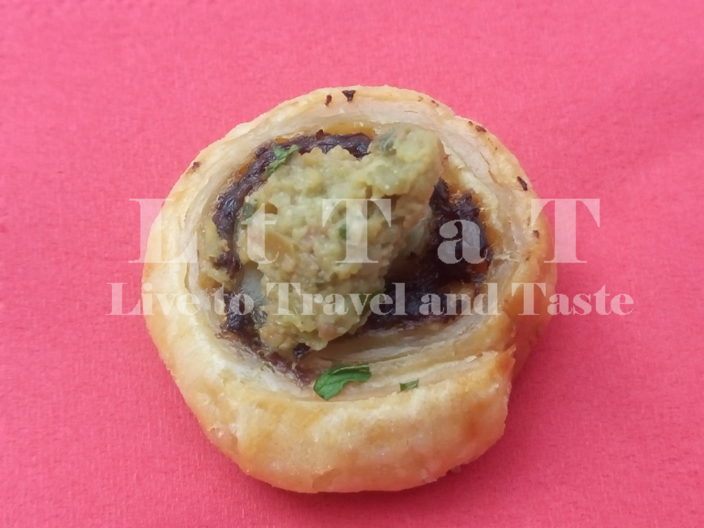 Ρολάκι με μανιτάρι και πατέ ελιάς.
