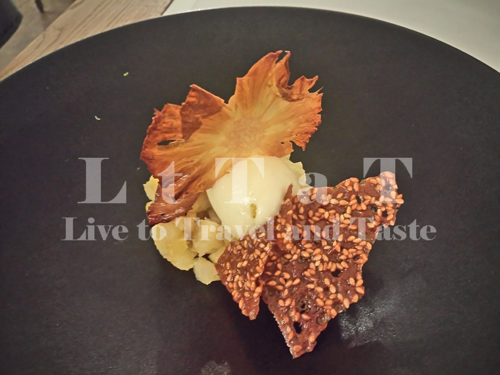 Τριλογία ανανά (που ήταν τελικά τετραλογία) με παγωτό ανανά, φρέσκο και καραμελωμένο φρούτο, αλλά και crispy ανανά.