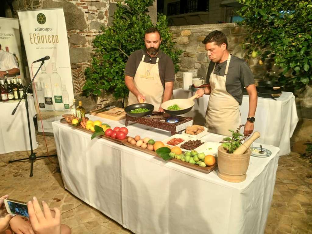 …των chef Αλέξανδρου Παπανδρέου και Ανδρέα Λαγού, χάριν του οποίου συγκεντρώθηκαν εκεί πάμπολλοι ντόπιοι και άλλοι τόσοι επισκέπτες της Λήμνου. Την εκδήλωση άνοιξε με έναν σύντομο χαιρετισμό του ο ιδιοκτήτης του «Taste Lemnos» Αλέξανδρος Αλεξάνδρου (αριστερά δίπλα στην Περιφερειάρχη), εκ μέρους της ομάδας που εμπνεύστηκε και διοργάνωσε το Φεστιβάλ ήδη από πέρυσι και την οποία συναποτελούν ο ίδιος, καθώς και η Δέσποινα Παντελιά με την Άνθεια Κώτση, ιδιοκτήτρια και διευθύντρια αντίστοιχα του πολυχώρου «Αποθήκη». Τον Αλέξανδρο διαδέχθηκε στο βήμα η Περιφερειάρχης Βορείου Αιγαίου Χρηστιάννα Καλογήρου (στο μικρόφωνο), Λημνιά και η ίδια, η οποία τόνισε την αναγκαιότητα ύπαρξης αντίστοιχων εκδηλώσεων σε όλα τα νησιά της Περιφέρειας, μιας και είναι αδιαμφισβήτητο ότι η τοπική γαστρονομία αποτελεί ένα ισχυρό χαρτί για την προβολή καθενός απ’ αυτά.
