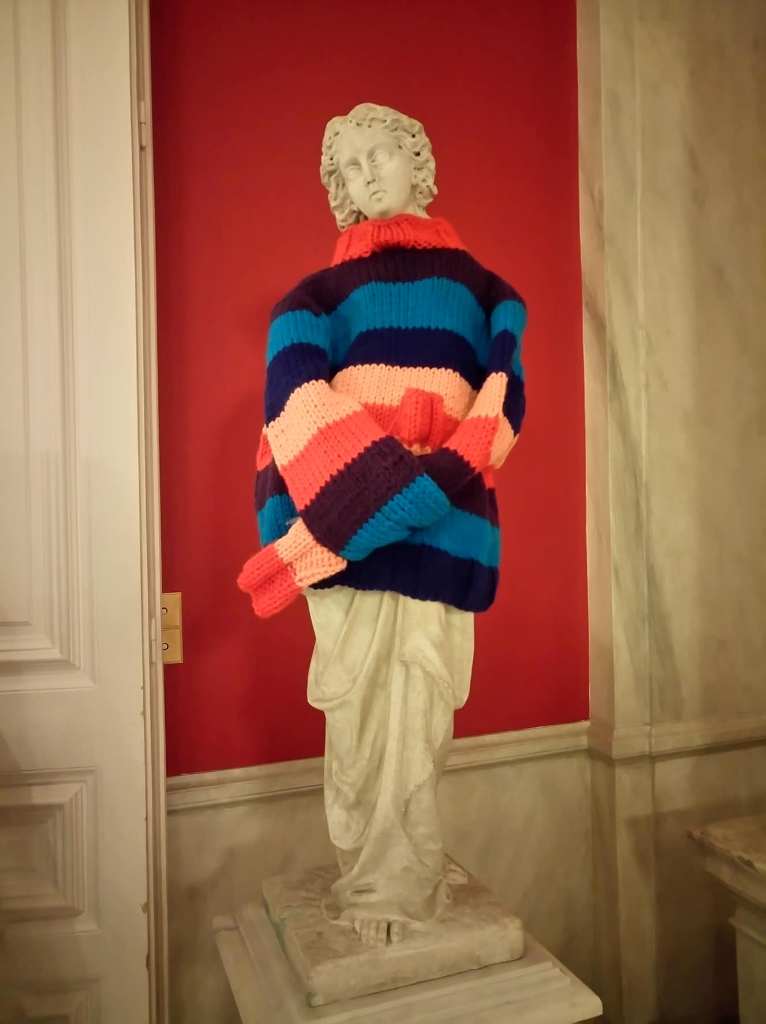 …φορεμένα στα αγάλματα που κοσμούν τους χώρους υποδοχής της Πρεσβείας.