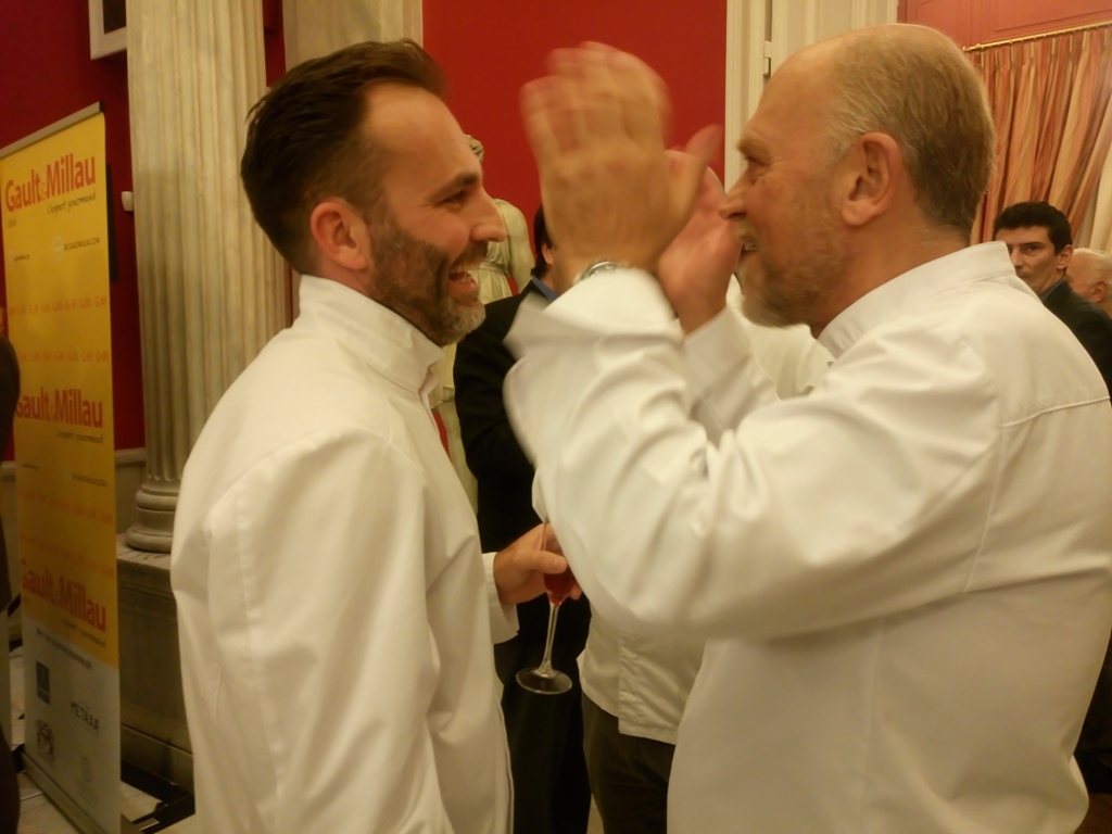 Ο Jean-Marie Hoffmann (αριστερά), αρχιμάγειρας της Πρεσβείας της Γαλλίας και ο εθνικός μας ζαχαροπλάστης Στέλιος Παρλιάρος.
