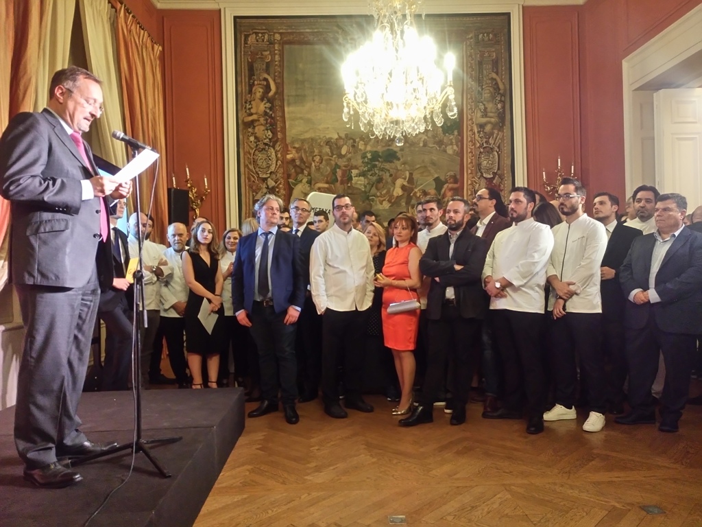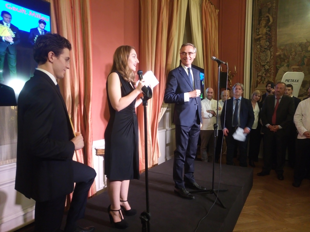 Την βραδιά άνοιξε με τον χαιρετισμό του ο Γάλλος Πρέσβης Christophe Chantepy (φωτο άνω), ενώ ακολούθησε η ομιλία του CEO του Gault & Millau Greece, Στέλιου Γρηγοριάδη (φωτο κάτω). Η επιτυχία της startup Be Foo, που ξεκίνησε στην Γαλλία μέσα από την προσπάθεια του Στέλιου Γρηγοριάδη να προωθήσει την υγιεινή και σωστή διατροφή, τον έβαλε στο επίκεντρο του ενδιαφέροντος. Το πάθος και η αγάπη του για το ποιοτικό φαγητό έπεισαν τον θεσμό να τον εμπιστευτεί και έτσι η Gault & Millau στην Ελλάδα είναι πλέον γεγονός. Ακολούθησε η τοποθέτηση του Προέδρου του Gault & Millau International, Come de Cherisey, ο οποίος έκλεισε την ομιλία του με την υπόσχεση ότι η ελληνική κουζίνα και τα προϊόντα της θα ταξιδέψουν μέσα από το διεθνές δίκτυο του Gault&Millau και η χώρα μας θα μπει στον παγκόσμιο γαστρονομικό χάρτη.