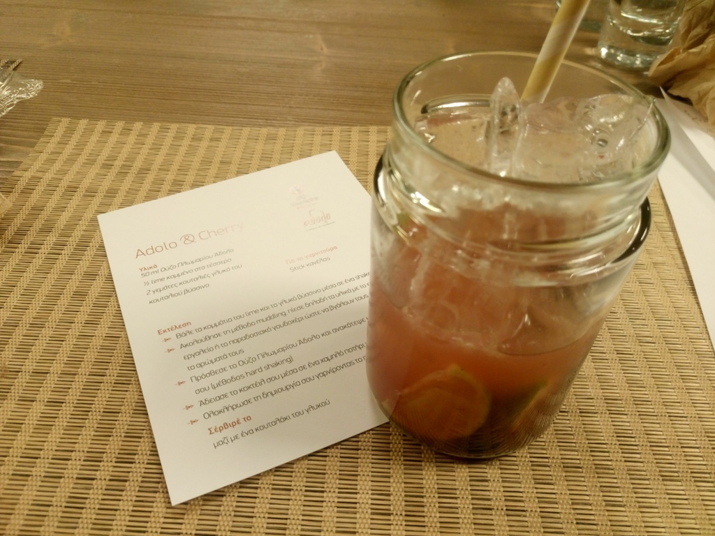 …και να φθάσει τελικά στο ποτήρι μας το ακαταμάχητο cocktail με «Άδολο» και cherry! Και αν η γνώμη κάποιου που δεν είναι λάτρης του ούζου μετράει λίγο περισσότερο από αυτήν των φανατικών καταναλωτών του, τότε κι εγώ δηλώνω απερίφραστα ότι το ερωτεύτηκα!!! Η συνταγή στη διάθεσή σας by Διονύσης Πολάτος.
