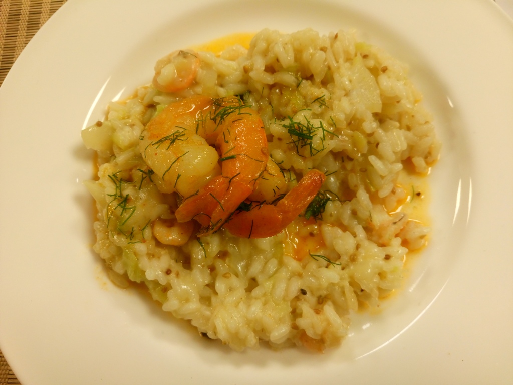 Αμέσως μετά έρχεται η σειρά της δεύτερης συνταγής: Ριζότο με γαρίδες και φινόκιο, την οποία επίσης σας παραδίδω για τα εορταστικά μαγειρέματά σας!