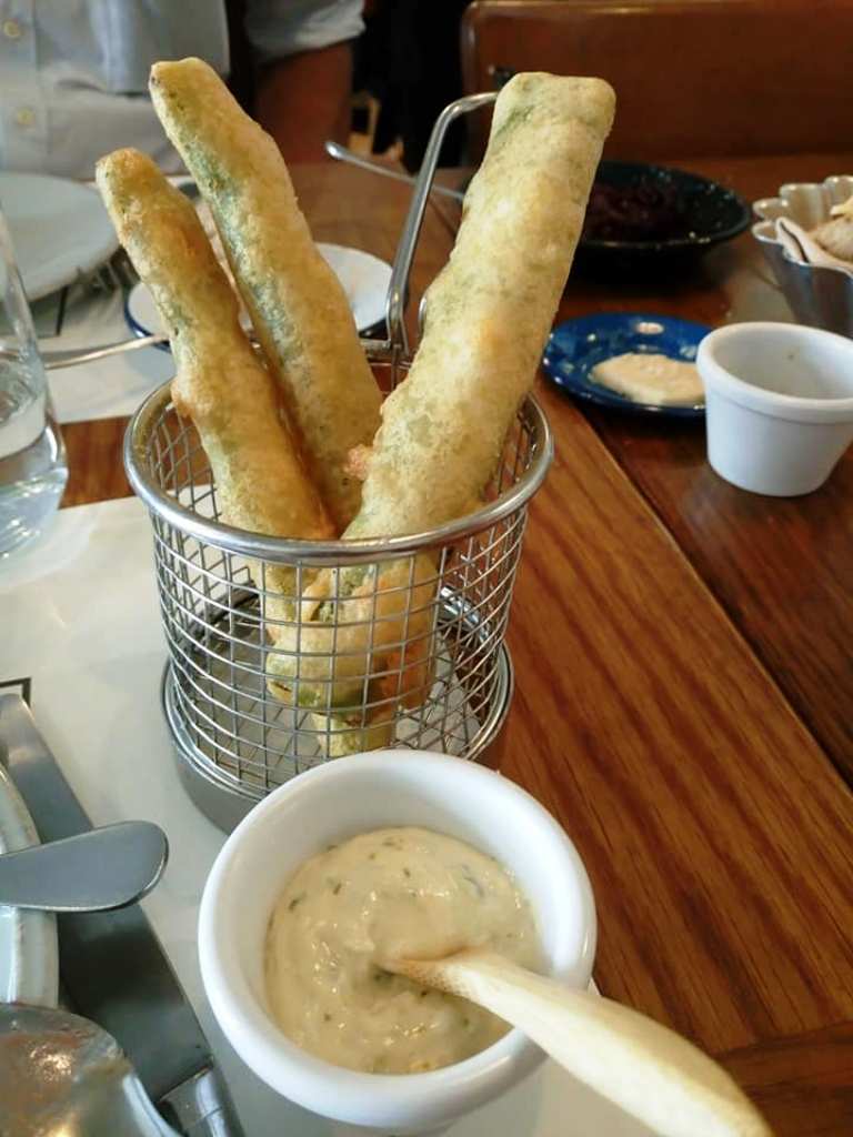 Ακολούθησε ένα από τα πλέον παραδοσιακά ορεκτικά της πορτογαλικής κουζίνας με καλοτηγανισμένα και τραγανιστά πράσινα στρουμπουλά φασολάκια (tempura) καρυκευμένα με lemon salt (είναι αυτό ακριβώς που ακούγεται, αλάτι με ένα άγγιγμα λεμονιού) και σερβιρισμένα με sauce tartar.