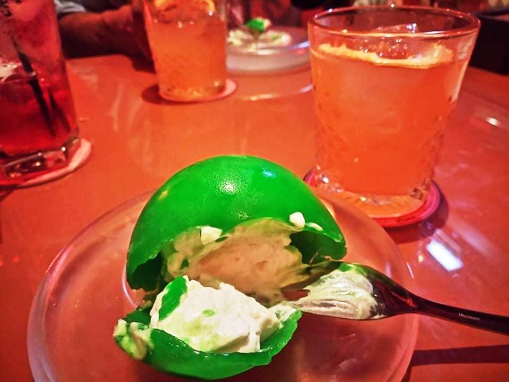 Γλυκιά σφαίρα με λεμόνι και lime, o ορισμός της έκπληξης! Συνοδεύεται με cocktail από ουίσκι Chivas.