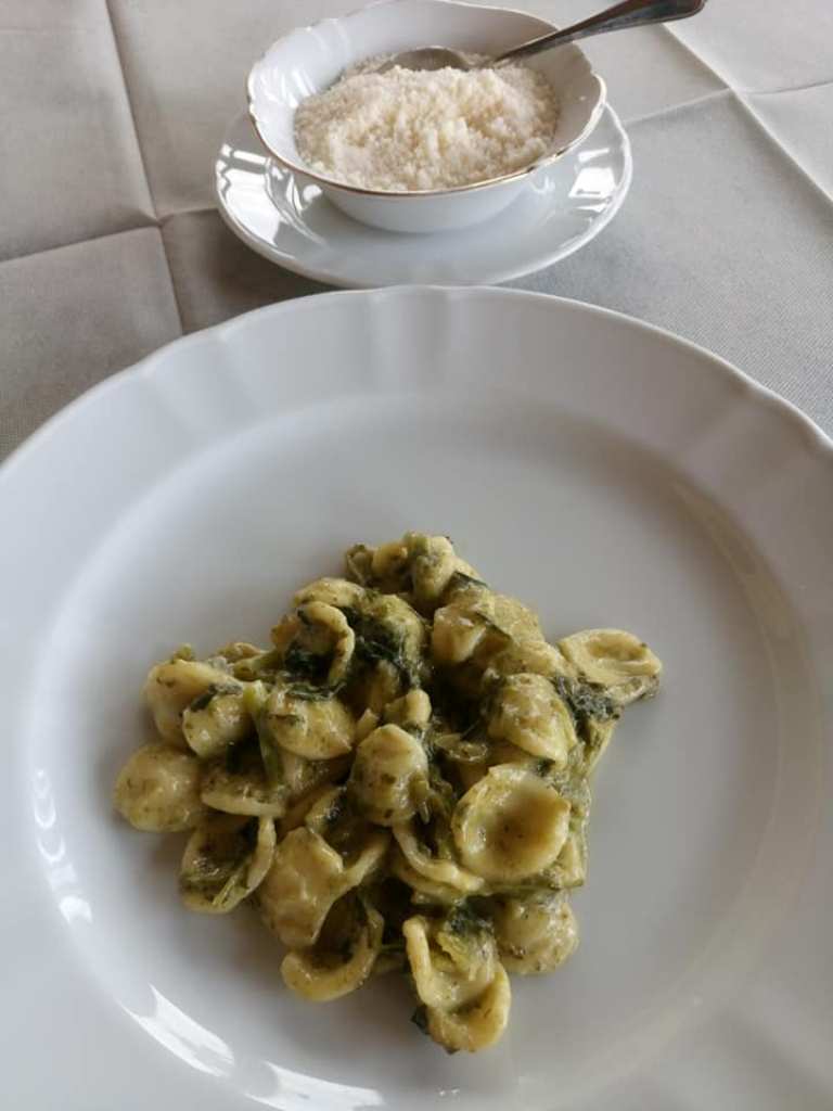 Orecchiette -ζυμαρικά σε σχήμα που θυμίζει μικρά αυτάκια- con cime di rapa (είδος μπρόκολου).