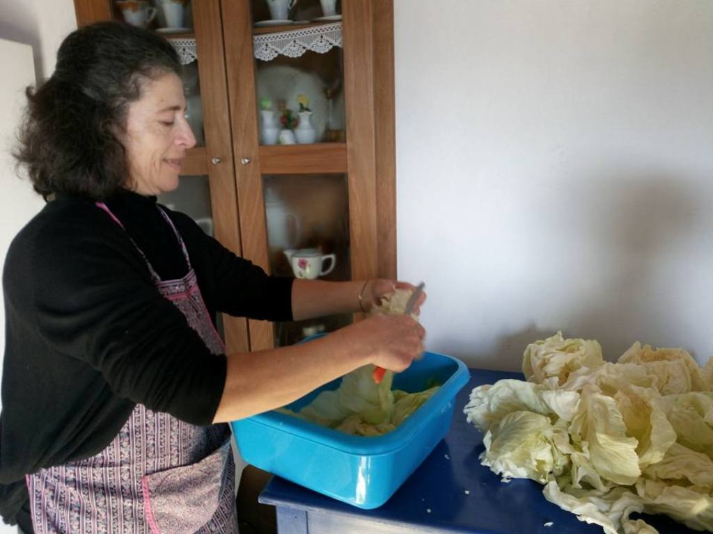 Παράλληλα προετοιμάζονται από την Μαρία Καλή τα φύλλα του λάχανου, ενώ τα αμπελόφυλλα είναι ήδη έτοιμα και αναμένουν.