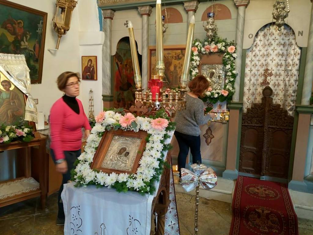Ο ναός ανθοστολίζεται από τα επιδέξια χέρια της Σταυρούλας Στολιάρου και της Σοφίας Καπετανγιάννη. Τα πάντα πρέπει να είναι άψογα!