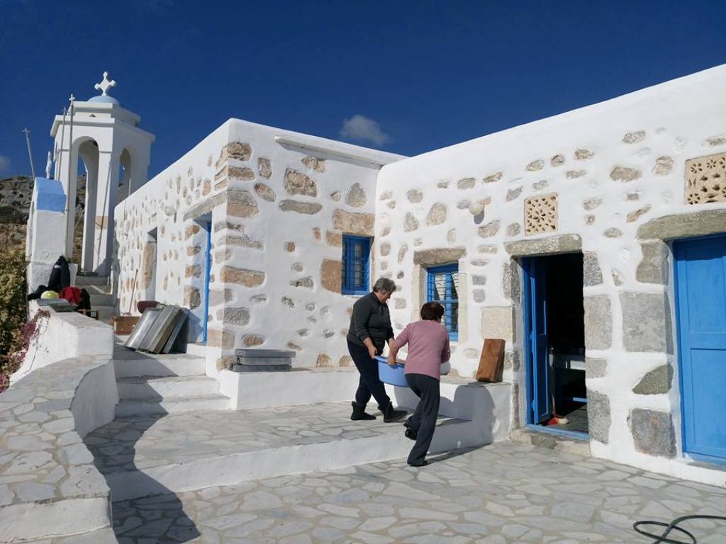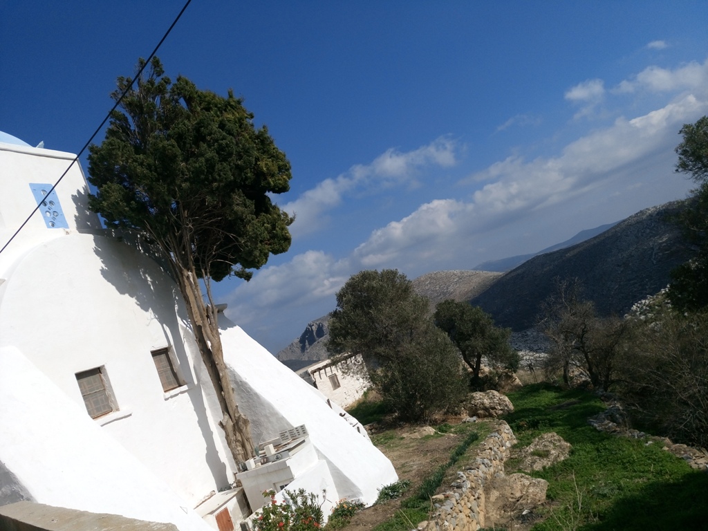 Οι εξωτερικοί χώροι της Μονής, καθαροί και περιποιημένοι μετά από πολλές εργατοώρες εθελοντικής εργασίας, αναμένουν τους ευσεβείς Αστυπαλίτες…