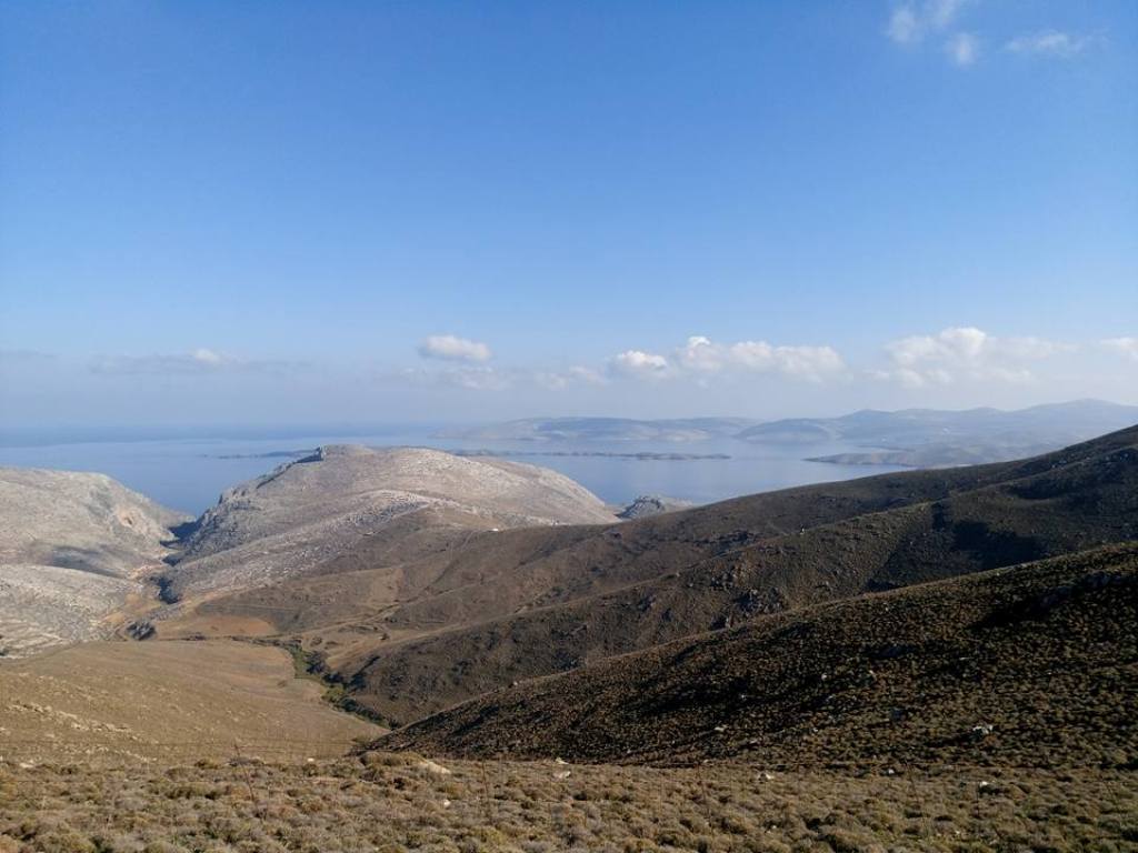 …διαβαίνει μέσα από βουνά και βοσκοτόπια, όπου την συντροφεύουν τα ελεύθερης βοσκής κατσικάκια και πρόβατα του νησιού.