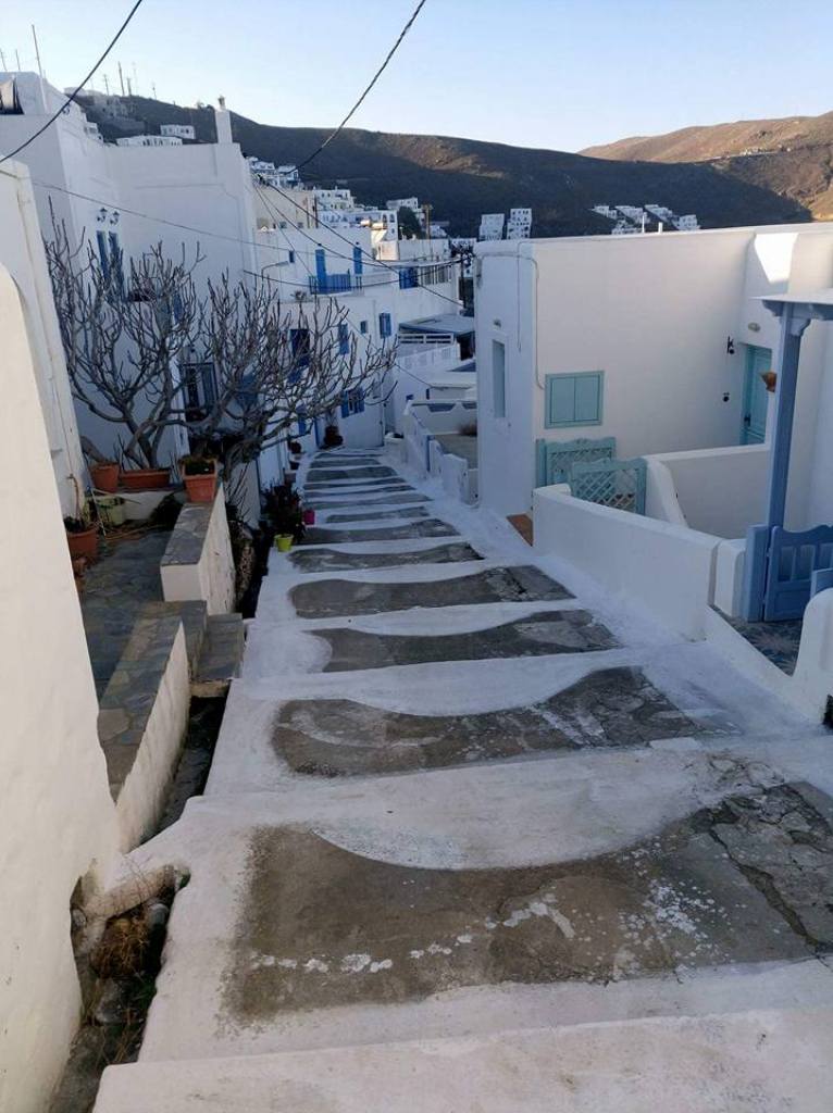 Αμέτρητα σκαλοπάτια συνδέουν την Χώρα με τον Πέρα Γυαλό, αποτελώντας μια θαυμάσια ευκαιρία για απογευματινό περίπατο σε ασπρογάλανο φόντο!