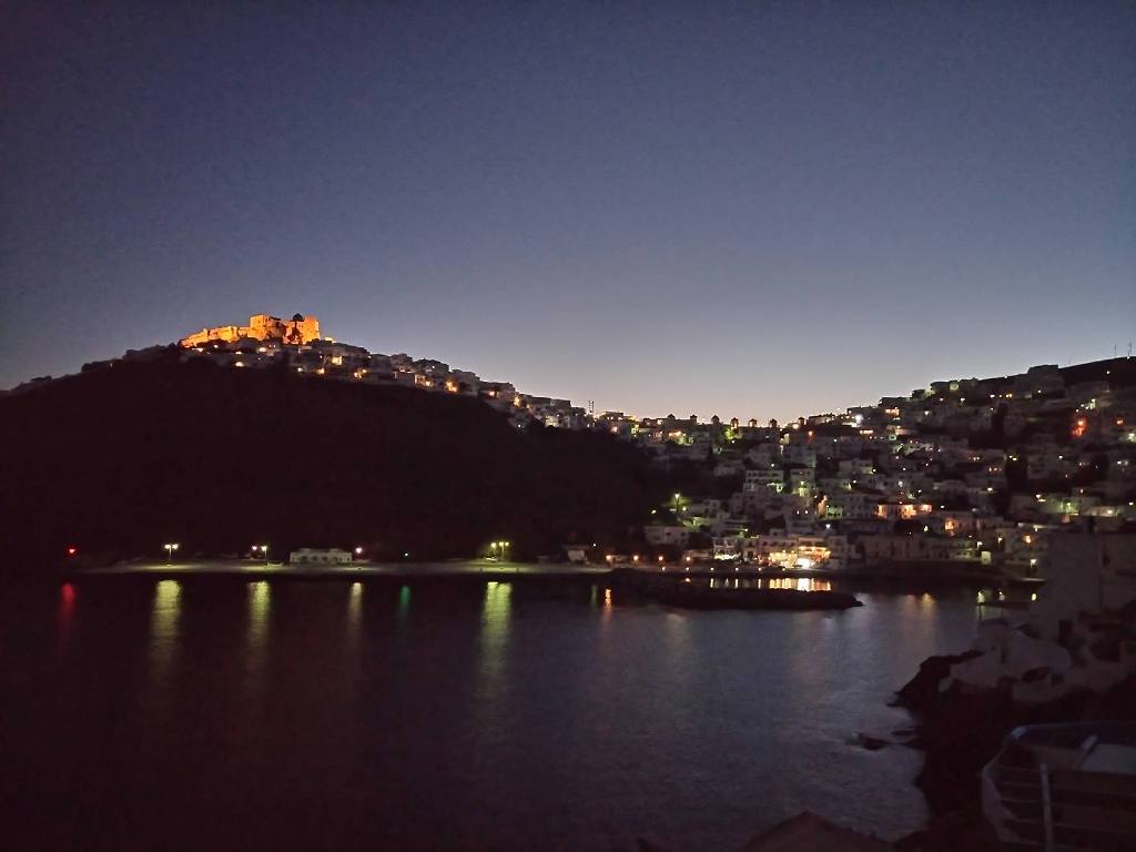 Τελευταία εικόνα! Η νυχτερινή άποψη του Πέρα Γυαλού και της Χώρας θα μείνει ανεξίτηλα χαραγμένη στην μνήμη σας! Γιατί στην Αστυπάλαια, τα πολύχρωμα φτερά της πεταλούδας λάμπουν ακόμα και στο σκοτάδι!