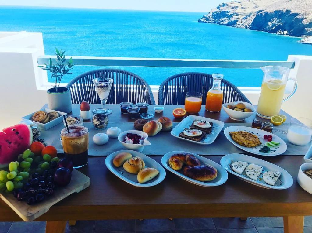Xειροποίητο Αστυπαλίτικο πρωινό με τοπικά, αγνά υλικά από τα χέρια της κυρίας Νίνας, με φόντο το απέραντο γαλάζιο!
