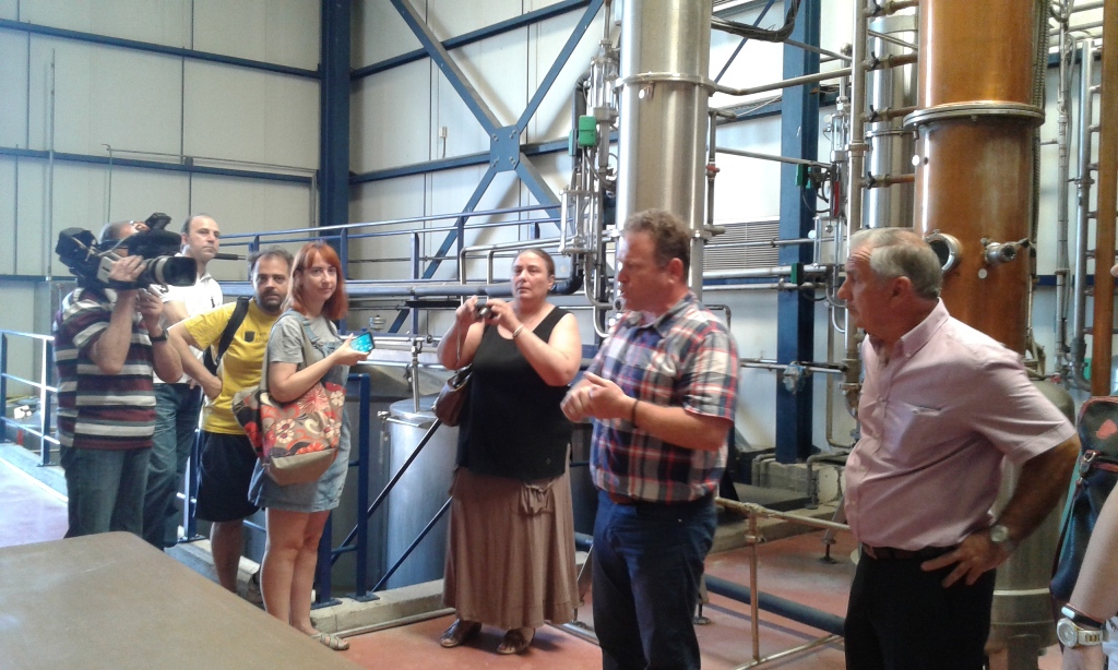Ο Πρόεδρος του Αγροτικού Συνεταιρισμού Ιωάννης Κίτσιος (πρώτος από δεξιά) και οι συνεργάτες του ξεναγούν δημοσιογράφους στους χώρους των εγκαταστάσεών τους.