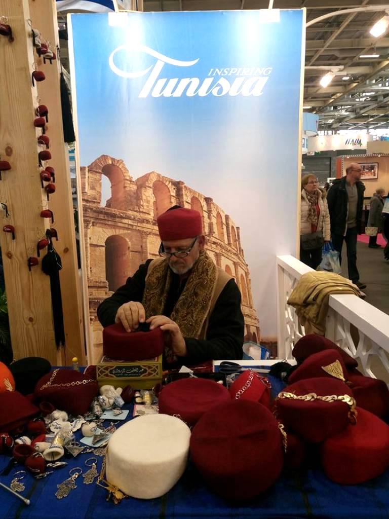 Παραδοσιακά φέσια κατασκευάζονται στο περίπτερο της Τυνησίας.