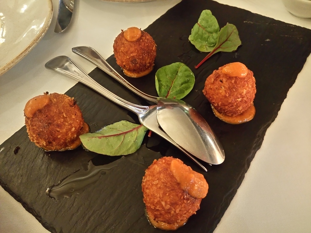 Ακολούθησαν τα Ελληνο-Κερκυραϊκής ταυτότητας ορεκτικά. Αλμυρά λουκουμαδάκια ελληνικών τυριών με μαρμελάδα τομάτας και βασιλικό.