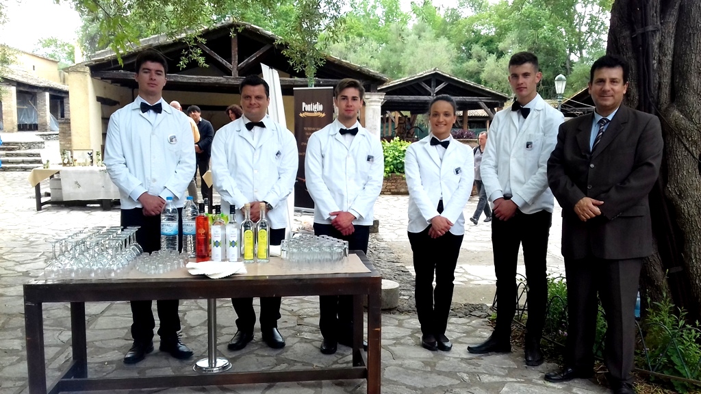 Οι σπουδαστές του Ι.Ε.Κ. Κέρκυρας Τουριστικών Επαγγελμάτων, που έχουν στην ευθύνη τους το bar της εκδήλωσης, ποζάρουν με τον Καθηγητή τους Kώστα Ζώτο, στο άκρο δεξιά.