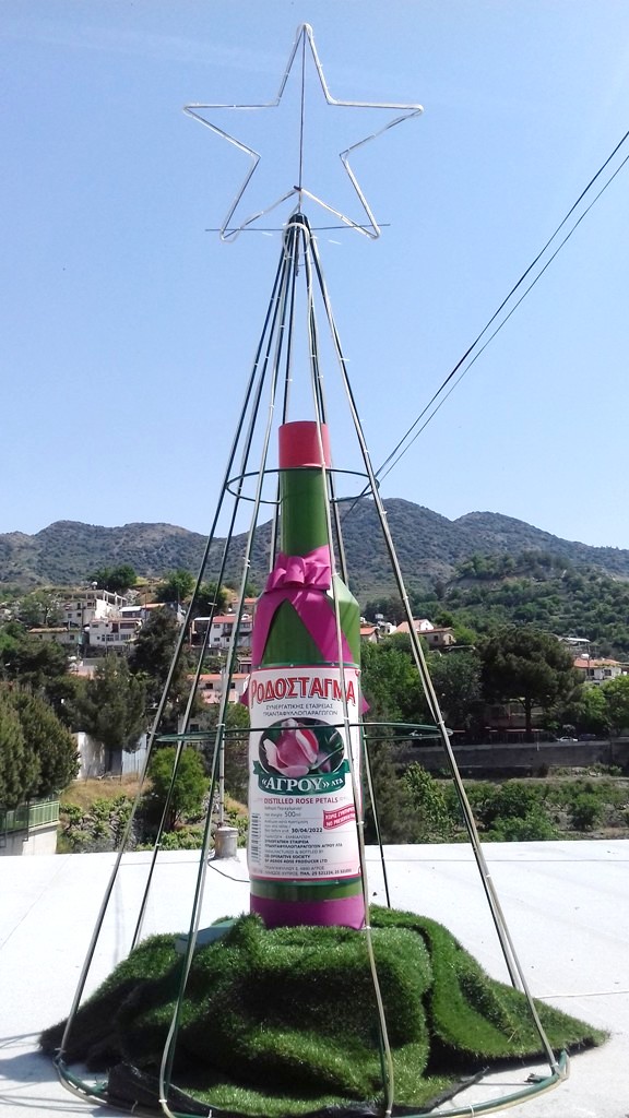 Η γιγαντιαία συσκευασία ροδοστάγματος, σήμα κατατεθέν του χωριού.