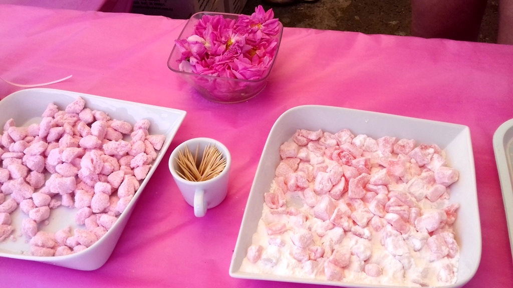 Πολλά και άφθονα τα ευωδιαστά κεράσματα με πρωταγωνιστές τα λουκουμάκια τριανταφύλλου…
