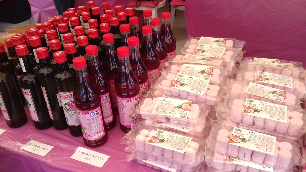 Το ίδιο αυτό άρωμα ξεχύνεται και απ’ όλα τα προϊόντα που παράγονται εδώ, από το σιρόπι τριανταφύλλου, έως το γλυκό ινδοκάρυδο με ροδόσταγμα..