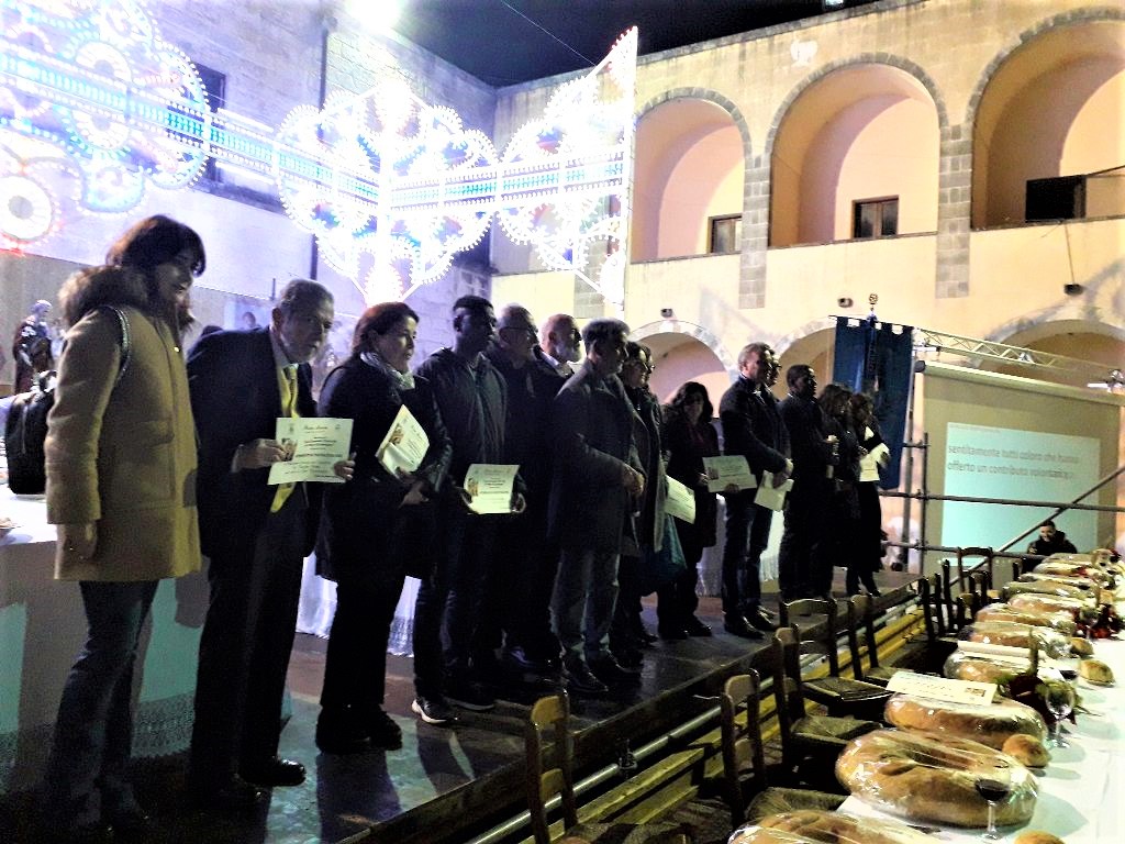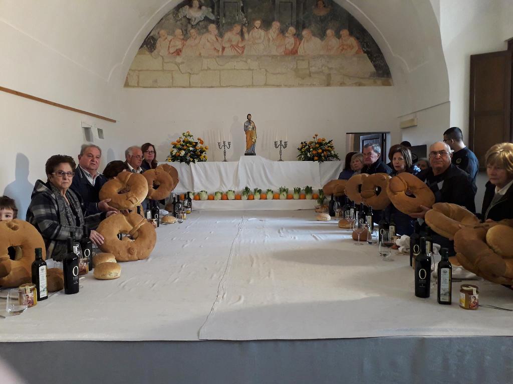 Μετά την ολοκλήρωση του σερβιρίσματος -το οποίο έφεραν και πάλι εις πέρας οι σπουδαστές του IPSSEOA Otranto, οι «Άγιοι» παραλαμβάνουν το υπερμέγεθες ψωμί του Αγίου Ιωσήφ…