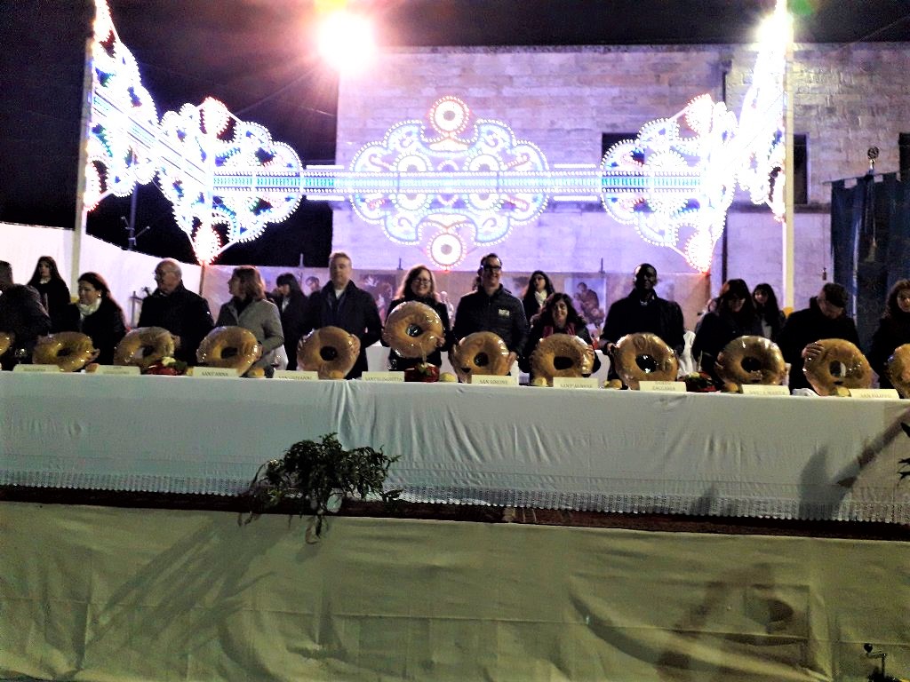 Το τελευταίο Τραπέζι της ημέρας, αλλά και το πιο επίσημο, το τελετουργικό του οποίου παρακολουθούν πολλές εκατοντάδες άνθρωποι, από όλη την ευρύτερη περιοχή, πραγματοποιείται στην πλατεία μπροστά από τον ναό του Sant’Antonio.
