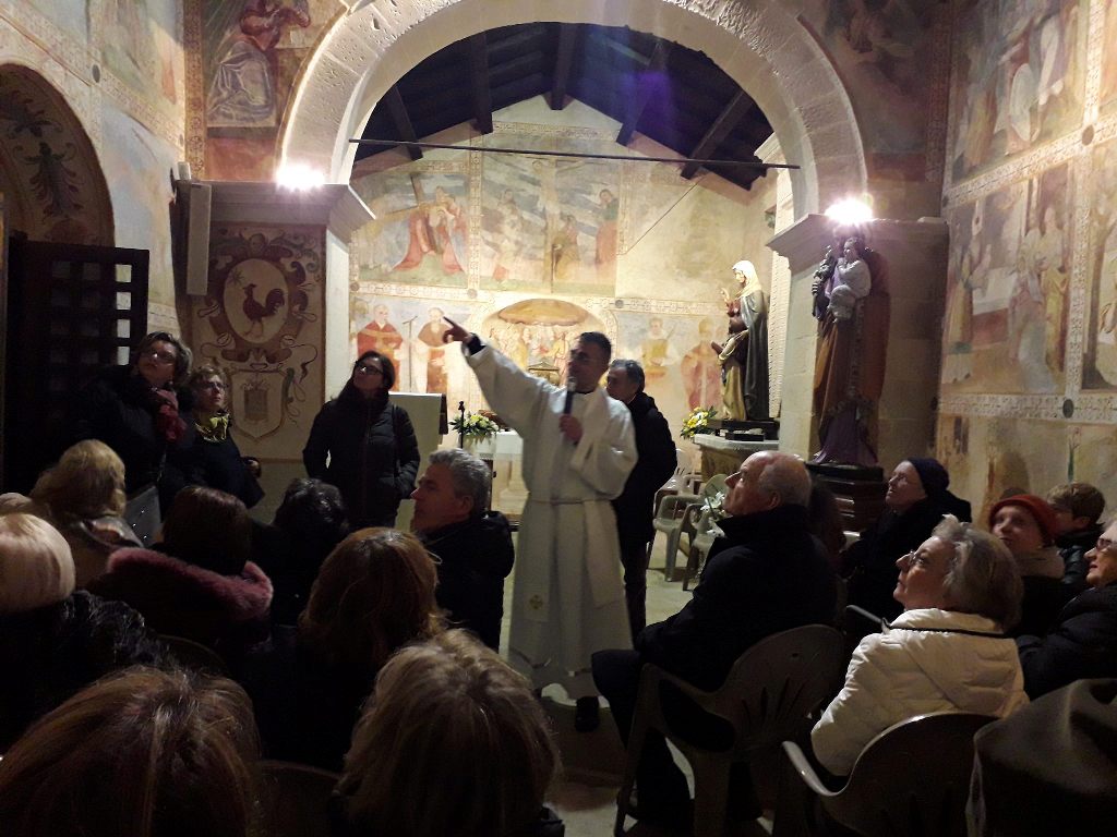 H παράδοση αυτή, που τηρείται με πολύ μεγάλη προσήλωση, μπορεί να έλκει την καταγωγή της είτε από τους Μεσαιωνικούς χρόνους, όταν οι ευγενείς προσέφεραν πλούσια στρωμένα τραπέζια στους φτωχούς κατά την διάρκεια συγκεκριμένων εορτών, είτε πάλι ως ανάμνηση της επίσης παλιάς συνήθειας για προσφορά φαγητού και συγκεκριμένα ενός πιάτου με ζυμαρικά και ρεβίθια, σε όποιον εμφανιζόταν στο σπίτι μίας ευσεβούς οικογένειας, στις αρχές Μαρτίου. Μία από τις βασικές αρχές της καθολικής θρησκείας είναι εκείνη που τοποθετεί την αναζήτηση της ευτυχίας στον Ουρανό και όχι στα εγκόσμια. Η απληστία θα έπρεπε, λοιπόν, να καταπολεμηθεί παντοιοτρόπως και ακόμα και τα πιο ταπεινά τρόφιμα θα έπρεπε να είναι αγιασμένα με κάποιο τρόπο. Έτσι, τα προαναφερθέντα ζυμαρικά με ρεβύθια (pasta e ceci ή “la massa” στην τοπική διάλεκτο), έπρεπε να μαγειρευτούν κατά τη διάρκεια της προσευχής προς τον Κύριο, να μείνουν για να ξεκουραστούν όση ώρα απαιτείται για δέκα προσευχές στην Madonna (Ave Maria) και να σερβιριστούν αφού ολοκληρωθεί η προσευχή με το Άγιο Ροδάριο (καθολικό κομποσκοίνι). Εύκολα αντιλαμβάνεται κανείς ότι μία ευσεβής οικογένεια δεν θα μπορούσε να φάει τίποτα άλλο παρά τα υπολείμματα, εάν υπήρχαν! Η ιεροτελεστία αυτή τηρείται και σήμερα. Τα ζυμαρικά προετοιμάζονται εκ των προτέρων, ενώ την ημέρα του τελικού μαγειρέματος, οι εθελοντές που έχουν αναλάβει το έργο αυτό απαγγέλλουν την προσευχή του Αγίου Ροδαρίου.