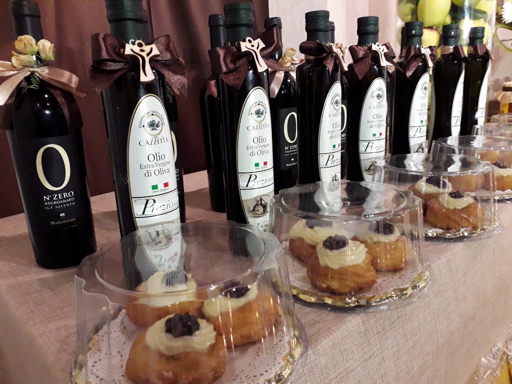 …και βεβαίως κρασί, ελαιόλαδο και γλυκάκια zeppole, γεμιστά με κρέμα ζαχαροπλαστικής, που αποτελούν ένα ακόμα σύμβολο της γιορτής του Αγίου Ιωσήφ, αλλά και της Γιορτής του Πατέρα, που στην Ιταλία γιορτάζεται την ίδια μέρα.