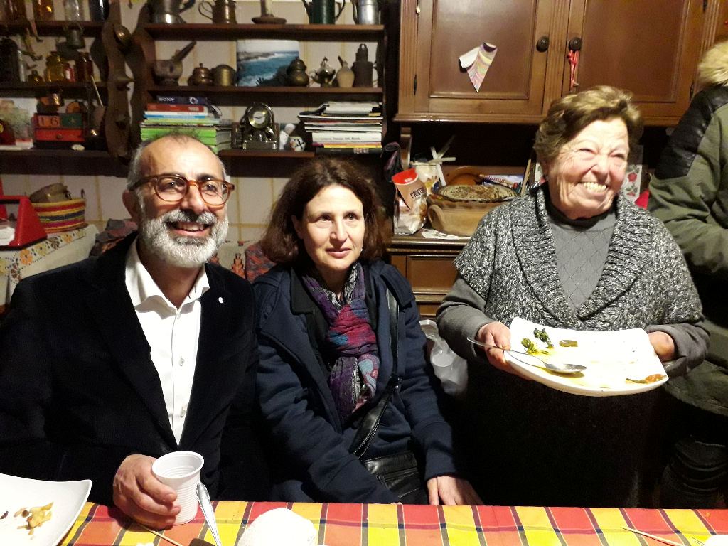 …αλλά και μας περιποιήθηκε έναν – έναν ξεχωριστά με τα πλούσια παραδοσιακά εδέσματα που η ίδια είχε ετοιμάσει, πάντα με το αφοπλιστικό της χαμόγελο στα χείλη. Αριστερά ο Δήμαρχος του Minervino, o Fausto De Giuseppe και δεξιά η κυρία Santina.