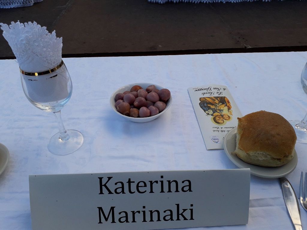 Όλα αυτά μπορεί να ηχούν παράξενα και εξωπραγματικά, συμβαίνουν όμως κάθε χρόνο, στις 18 και 19 Μαρτίου, στο Salento της Puglia, στη Νότια Ιταλία -στο τακούνι, όπως συνηθίζουμε να λέμε, της ιταλικής μπότας-, στην περιοχή του Otranto και κυρίως στην όμορφη κωμόπολη του Minervino di Lecce και των μικρών χωριών γύρω του, στην Specchia Gallone και στην Cocumola, που ανήκουν διοικητικά στον ίδιο Δήμο. Προφανώς, λοιπόν, τον ρόλο των προαναφερθέντων Αγίων αναλαμβάνουν να υποδυθούν κάποια εξέχοντα πρόσωπα της τοπικής κοινωνίας -με κορυφαίο τον ρόλο του San Giuseppe-, που θεωρούν μεγάλη τους τιμή να φέρουν εις πέρας την υψηλή αυτή αποστολή! Βεβαίως, αισθάνομαι κι εγώ ιδιαιτέρως υπερήφανη που είχα την τιμή να ζήσω μία μοναδική εμπειρία ζωής, υποδυόμενη την Αγία Αγνή (Sant’Agnese), στην φετινή διοργάνωση των Τραπεζιών του Αγίου Ιωσήφ!