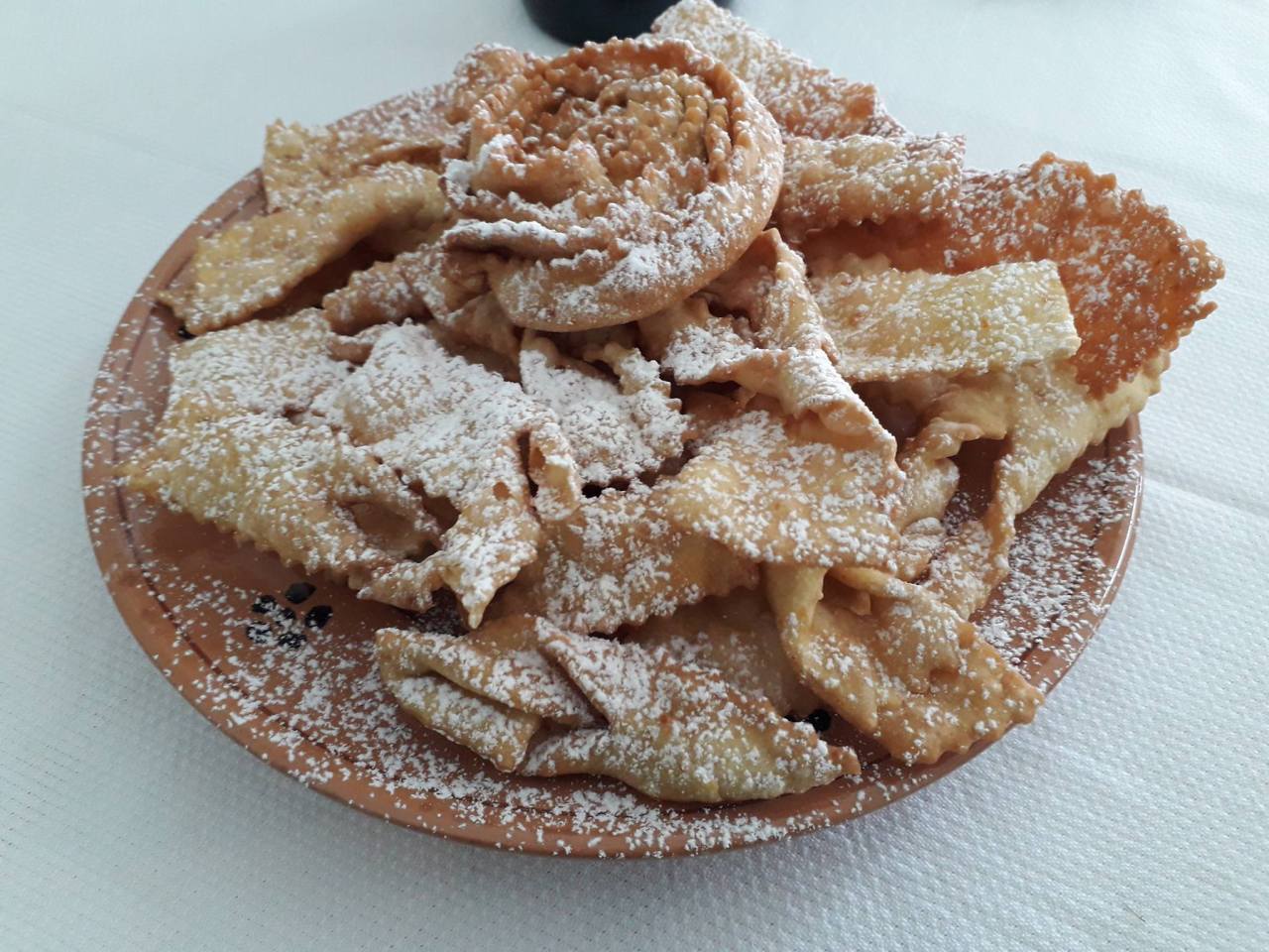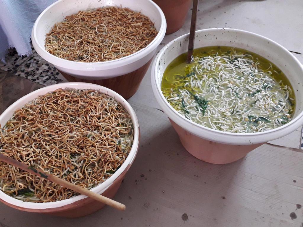 Τηγανητά ζυμαρικά gnocchetti (ένα είδος μικροκαμωμένων νιόκι), πάντα χειροποίητα και στην κορυφή το γλυκό ncartiddati ή cartellate…