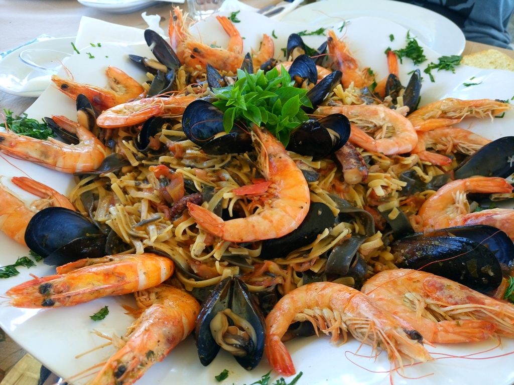Το κυρίως πιάτο: φλωμάρια με θαλασσινά! Από τις καλύτερες εκδοχές της γνωστής συνταγής «μακαρονάδα του ψαρά», που έχω δοκιμάσει στη ζωή μου!