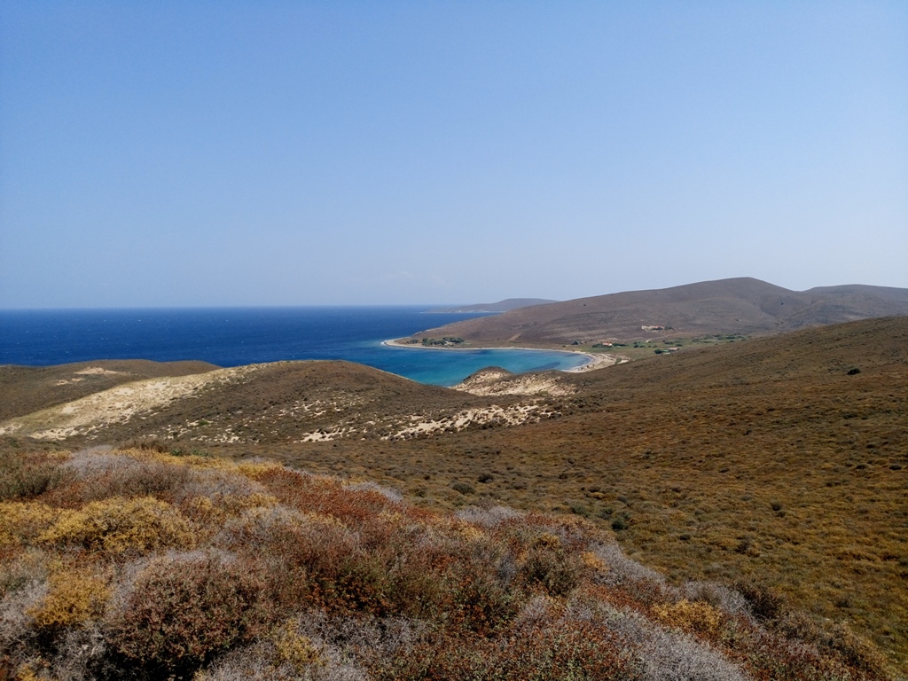 Ατενίζοντας από την Πολιόχνη τις νοτιοανατολικότερες ακτές της Λήμνου και την παραλία Κοκκινόβραχος.